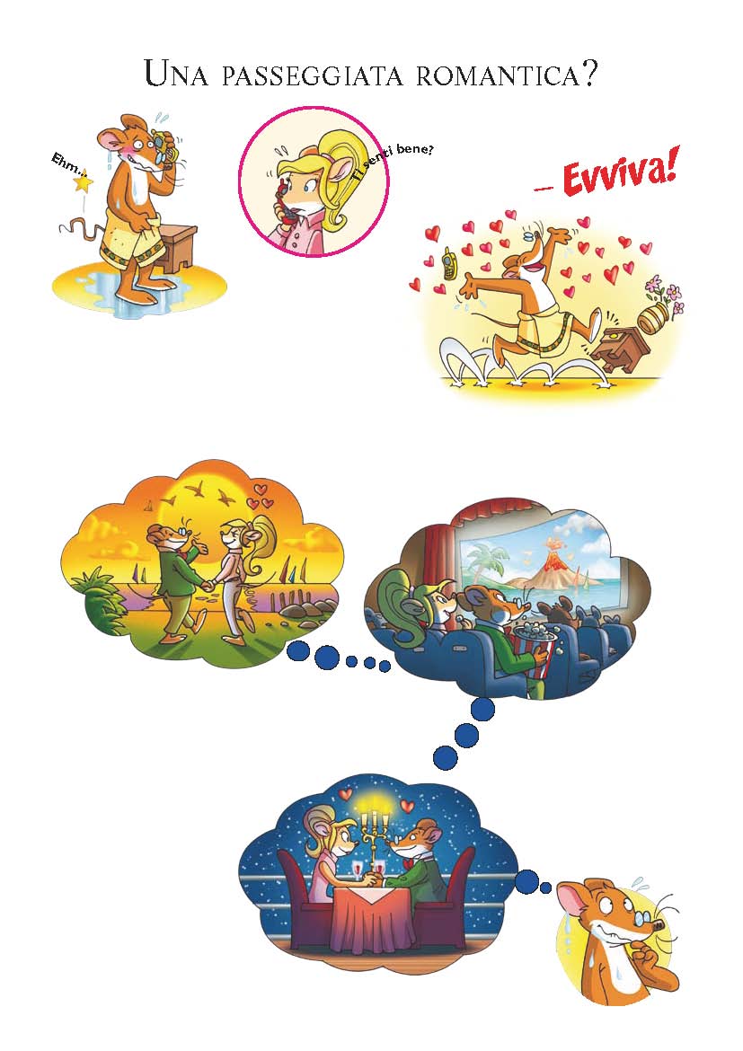 Guarda l'immagine, ispirati e crea la tua storia! Prendi spunto dalle figure e decidi tu cosa succederà a Geronimo e ai suoi amici!