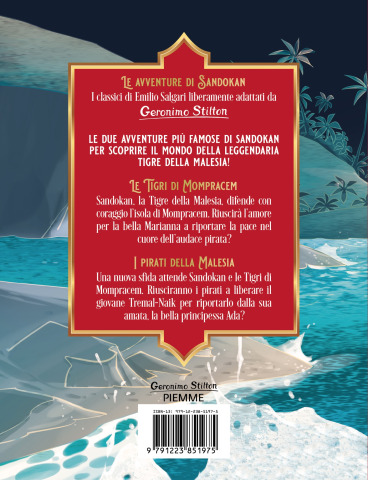 I classici di Emilio Salgari liberamente adattati da Geronimo Stilton : in questo volume, troverai le due avventure più famose di Sandokan per scoprire il mondo della leggendaria Tigre della Malesia! Le tigri di Mompracem Sandokan, la Tigre della Malesia, difende con coraggio l'Isola di Mompracem. Riuscirà l'amore per la bella Marianna a riportare la pace nel cuore dell'audace pirata? I pirati della Malesia Una nuova sfida attende Sandokan e le Tigri di Mompracem. Riusciranno i pirati a liberare il giovane Tremal-Naik per riportarlo dalla sua amata, la bella principessa Ada?