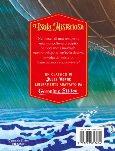 Un classico di Jules Verne liberamente adattato da Geronimo Stilton! Nel mezzo di una tempesta, una mongolfiera precipita nell'oceano: i naufraghi trovano rifugio su un'isola deserta, avvolta dal mistero.Riusciranno a sopravvivere?
