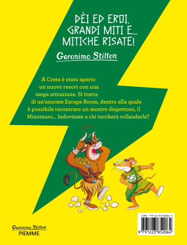 Dèi ed eroi, grandi miti e... mitiche risate! Quando nonno Torquatides si mette un'idea in testa, è impossibile fargli cambiare opinione... E così sono finito a Creta, iscritto a una gara per testare la nuova Escape Room di cui tutta la Grecia parla. Si tratta dell'attrazione del nuovo resort aperto dal re Minosse: un gigantesco labirinto progettato dal famoso architetto Dedalo, contenente una sorpresa... il Minotauro! Un giovane principe dall'aspetto mostruoso e dal carattere dispettoso, che non vede l'ora di prendersi gioco dei poveri concorrenti. Ovviamente il nonno si aspetta che io vinca la gara e che porti gloria e onore alla nostra famiglia... Ma si sbaglia di grosso! Io non ho la stoffa dell'eroe, e i mostri mi fanno frullare i baffi per la fifa! Squiiiiit !