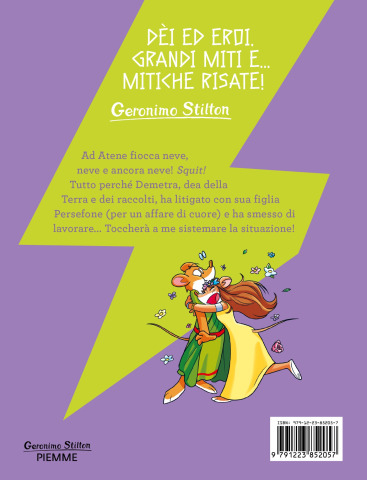 Dèi ed eroi, grandi miti e... mitiche risate! Conoscete Persefone, la giovane dea gentile e delicata? Da quando nella sala d'attesa del dentista ha incontrato Ade, dio dell'Oltretomba, non è più la stessa... Ha fatto le valigie, ha lasciato la casa della madre ed è scesa da lui... perché vuole sposarlo e trasferirsi nel suo regno per sempre! Vi sembra niente?! Posso solo dirvi che da allora tutta la Grecia è ricoperta dalla neve. Perché Demetra, madre di Persefone e dea della Terra e dei raccolti, non approva la scelta della figlia e ha deciso di protestare... incrociando le braccia! E Zeus, il re degli dèi, ha avuto la brillante idea di affidare a me, Gerolympos, il compito di sistemare la faccenda. Ma io vorrei solo scrivere poemi, come il grande Omero! Squiiiit !