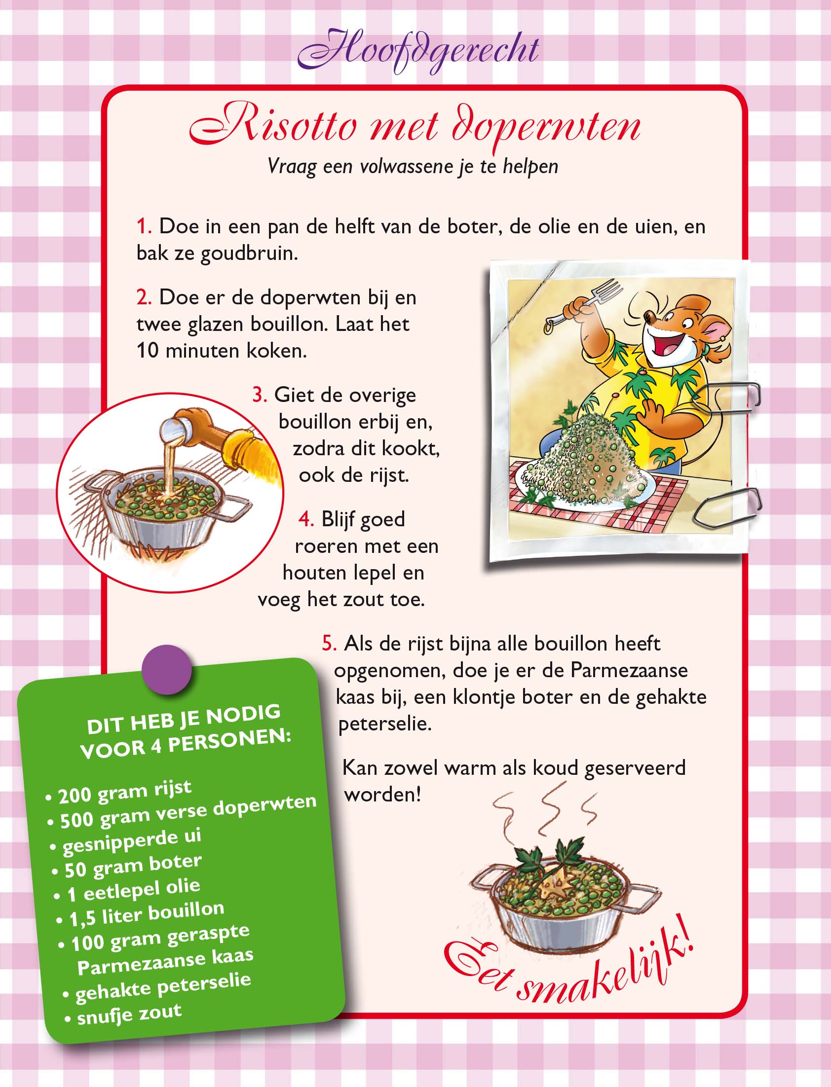 Jippie, het is kerstvakantie! Lekker even niet naar school en heel veel leuke dingen doen! Zoals een lekker maaltijd maken voor je vrienden of familie. Ga de keuken in en kook rattenrap dit heerlijke recept uit mijn nieuwe boek: Wie wordt de nieuwe meesterchef?